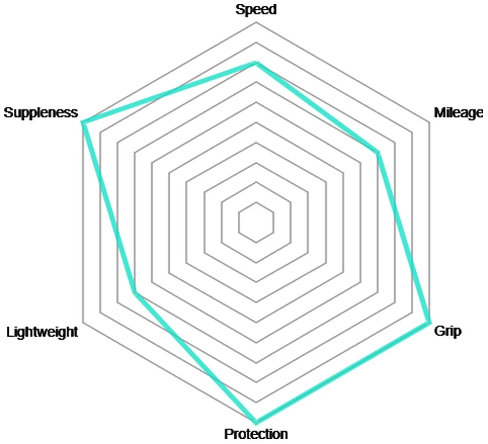 Le motif de la bande de roulement en chevron ajoute des performances dynamiques à la bande de roulement du Corsa Control, permettant une meilleure adhérence sur les surfaces glissantes, ainsi qu’une durabilité accrue.